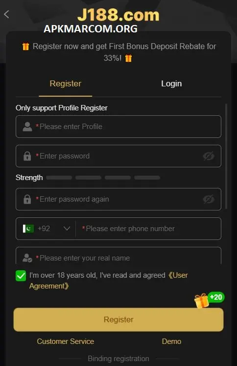 Creating an account on J188 is quick and easy, even for new users. First, complete the appand install on your Android phone. After opening the file, tap on the Register button. Enter your phone number, make a strong password, and agree to the terms. You will receive an OTP code on your mobile. Type the code to verify your account. Once verified, your account becomes active.