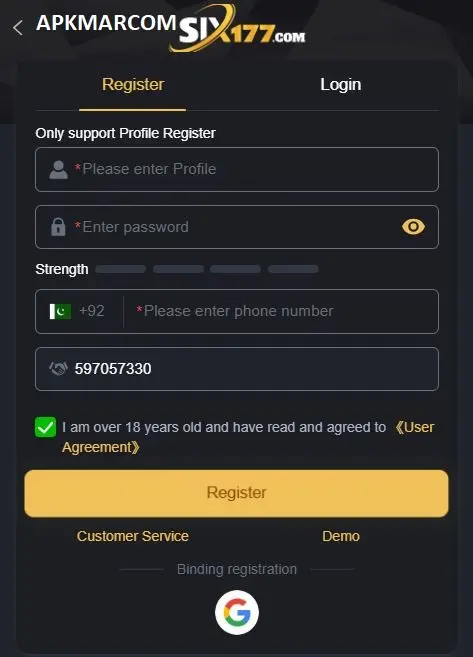 Account Registration Process in Six177 APK